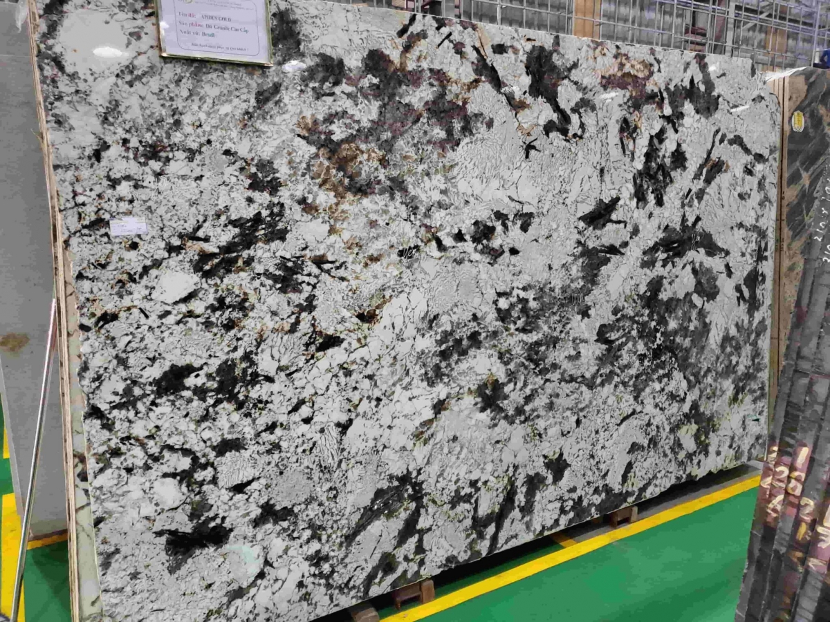 Đá Apidus Gold là mẫu đá hoa cương màu trắng, đen xen lẫn chạy xuyên suốt khắp bề mặt tấm đá.