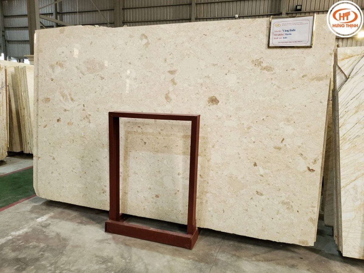 Màu sắc: Vàng kem điểm xuyến thêm những hạt ánh đồng bản to phân bổ khắp bề mặt đá, đặc biệt đá Marble Vàng Indo có độ bóng sáng cao tạo nên sự sang trọng cao quý, tôn lên vị thế của gia chủ trong không gian sử dụng. Sinh ra trong mỏ đá tự nhiên nên sẽ có độ bền tương đối cao nếu người sử dụng bảo quản tốt.